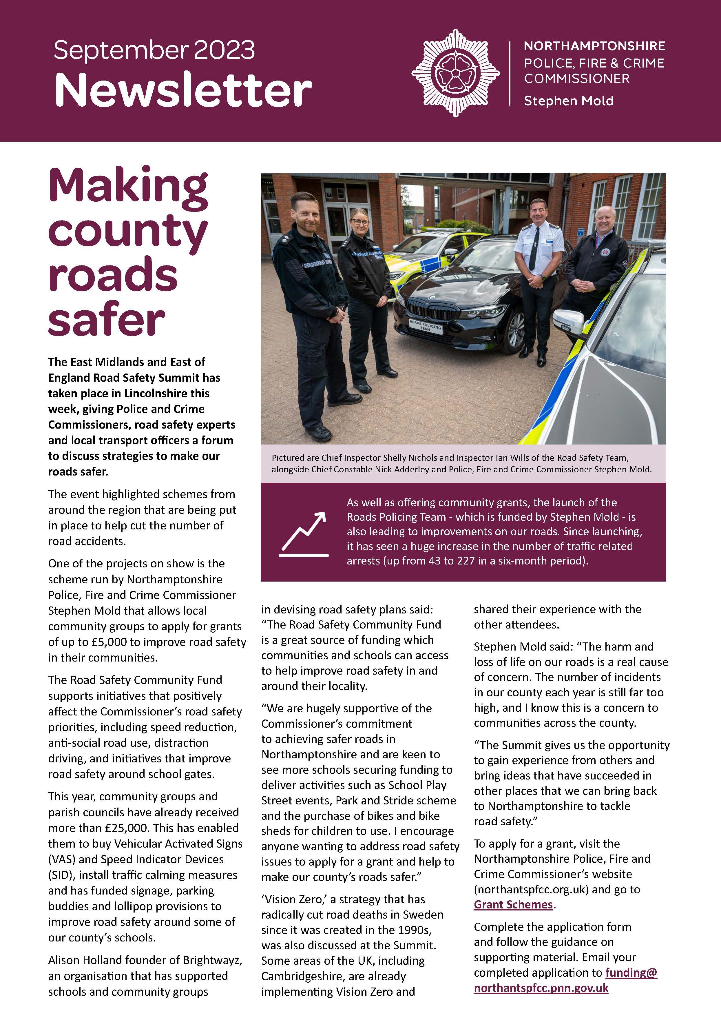 The newsletter can also be viewed and downloaded from our website - Newsletter - September 2023 - Northamptonshire Police & Fire Commissioner (northantspfcc.org.uk)