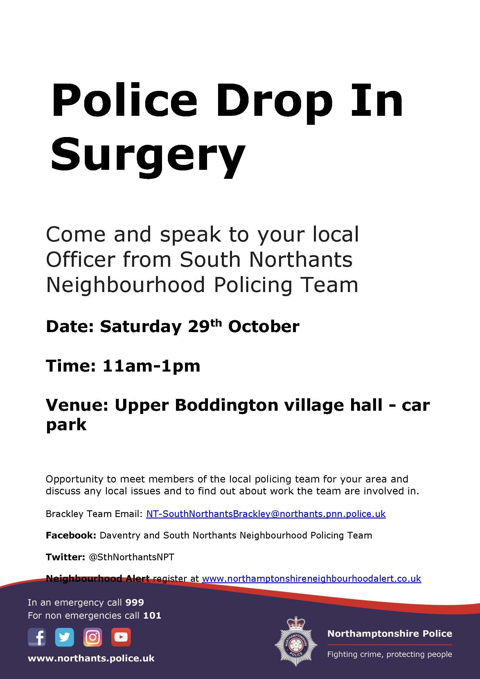 Come and speak to your local Officer from South Northants Neighbourhood Policing Team